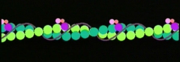 Aktinové spirály jsou obkrouženy tenkými molekulami tropomyosinu. Jedna molekula tropomyosinu překlenuje sedm molekul G aktinu a váže jeden troponinový komplex.